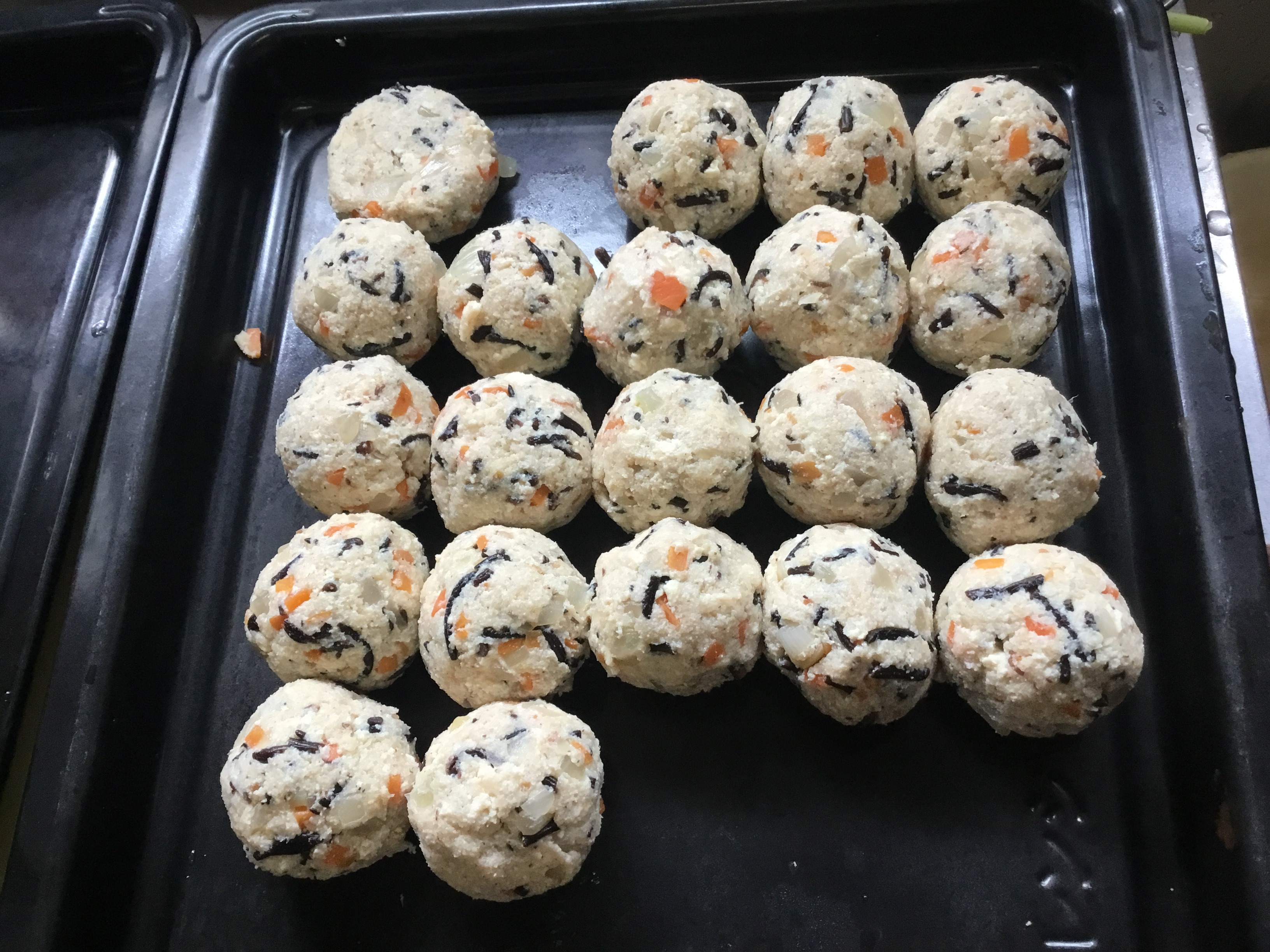 ごたごた荘は家庭サイズの台所。普通のサイズのフライパンを使って、4回−5回に分けて焼きます。