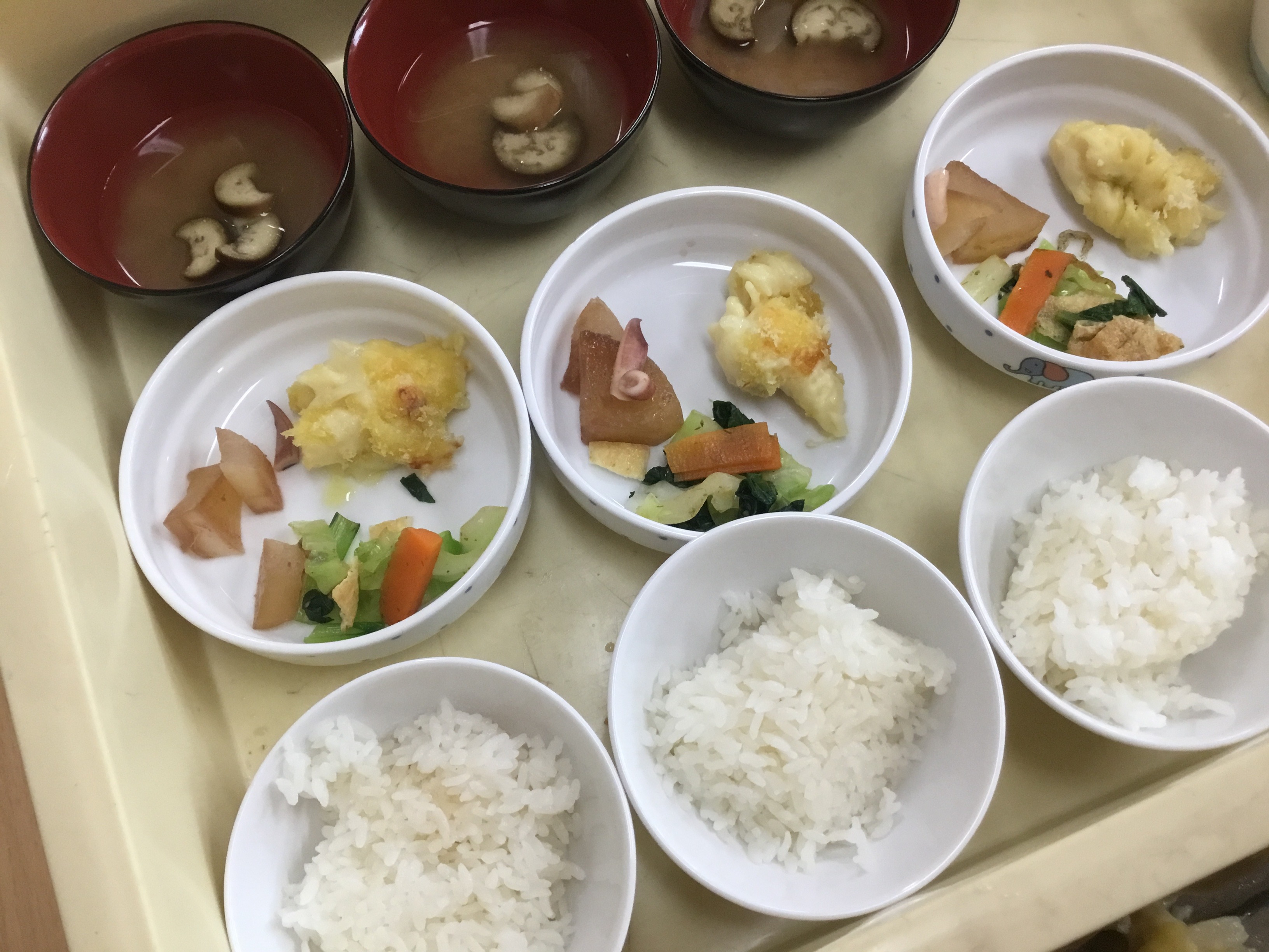 グラタン、イカと大根の煮物、焼油揚げと青菜の和物の日