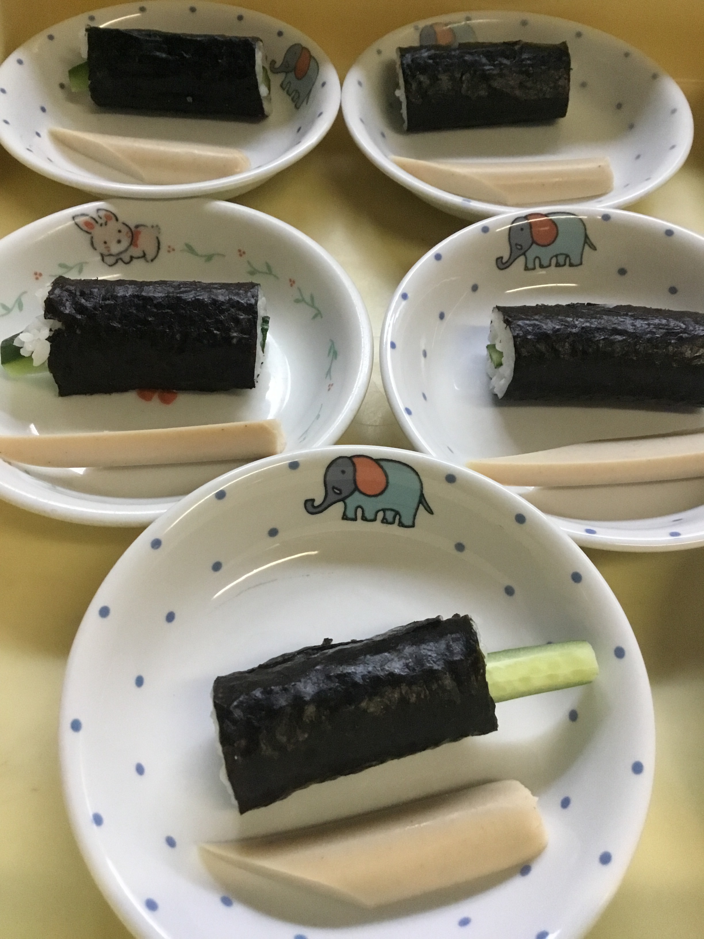 かっぱ巻き、お魚ソーセージ